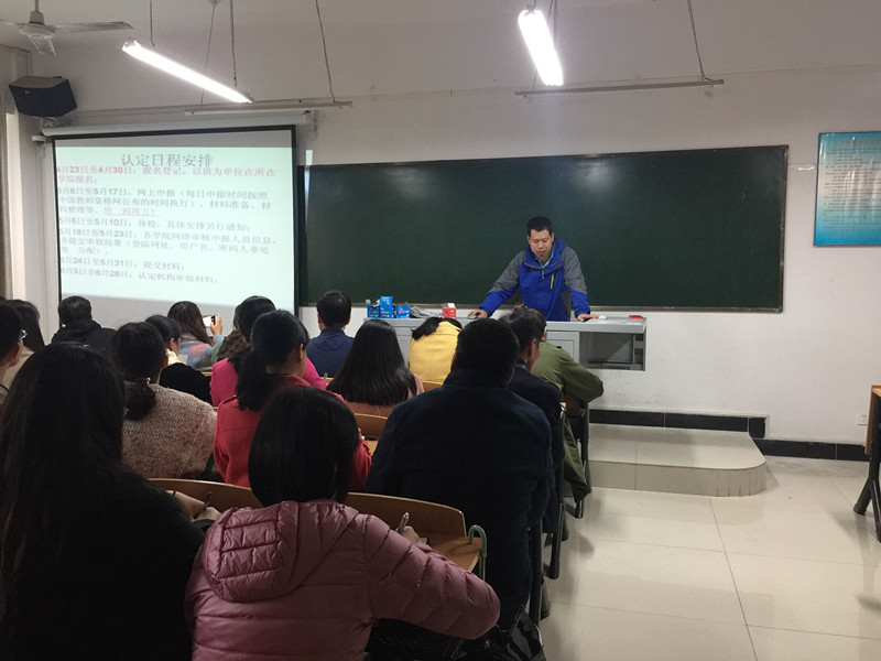 一竞技官网辅导员张文银老师首先表达了人事处对一竞技官网的工作的认可和支持,并说明此次培训会的必要性和重要性。其次,张老师声情并茂地从申报流程、申报材料和申请注意事项等方面详实地讲解了此次应届师范毕业生教团队格网申。最后,张老师针对现场老师和同学的问答做出一一解释。
