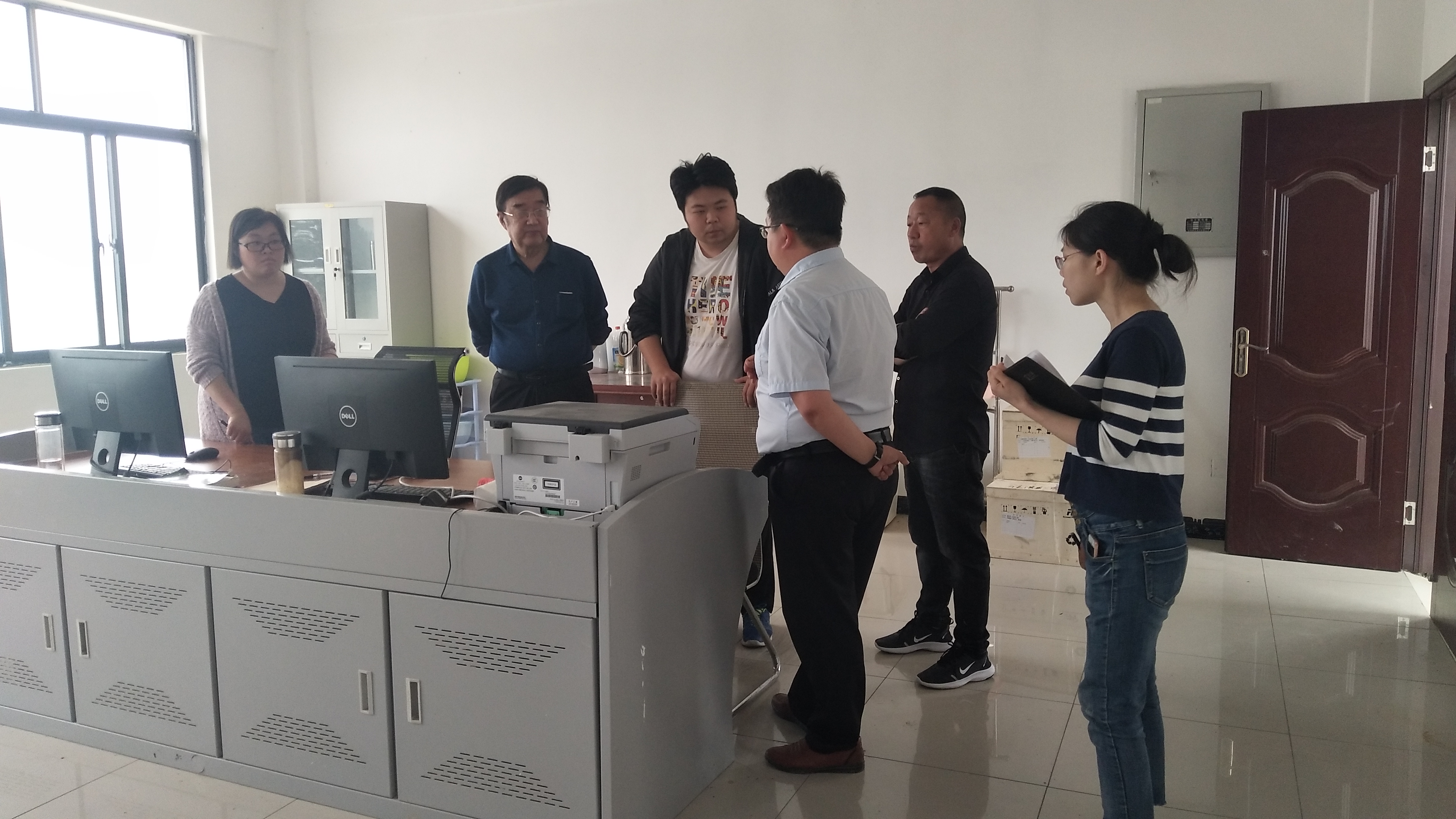 然后考察组又去“河南省浙商纺织工业园”考察调研,车间完全采用电脑数控设备,产值达到100万/天。目前工厂没有引进印染设备,如若自己印染,产值还可翻一倍,前景可观。考察组就印染技术、废水重金属离子处理问题与负责人交换了意见。